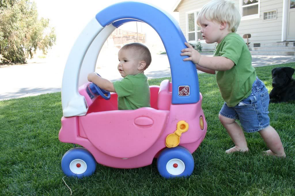 oh the joy discovered with the pink car! they needed alittle help in their creativity, but once the car was found it was all good.