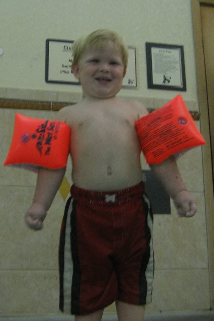 its easier to not do alot of things. but that is not the lifestyle we want to teach. so - we got out the swimsuits, bought arm floaties for the 1st time and headed out to the pool last night.