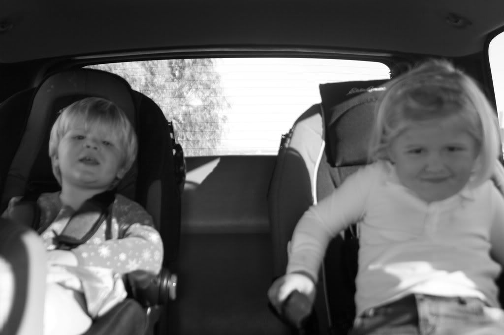 we were in the driveway already and we went with black and white to not embarrass jacky in the fact he's wearing a pink sweatshirt. the mud puddles at grandma's was quite a draw. and grandma had no tractor sweatshirts . . .