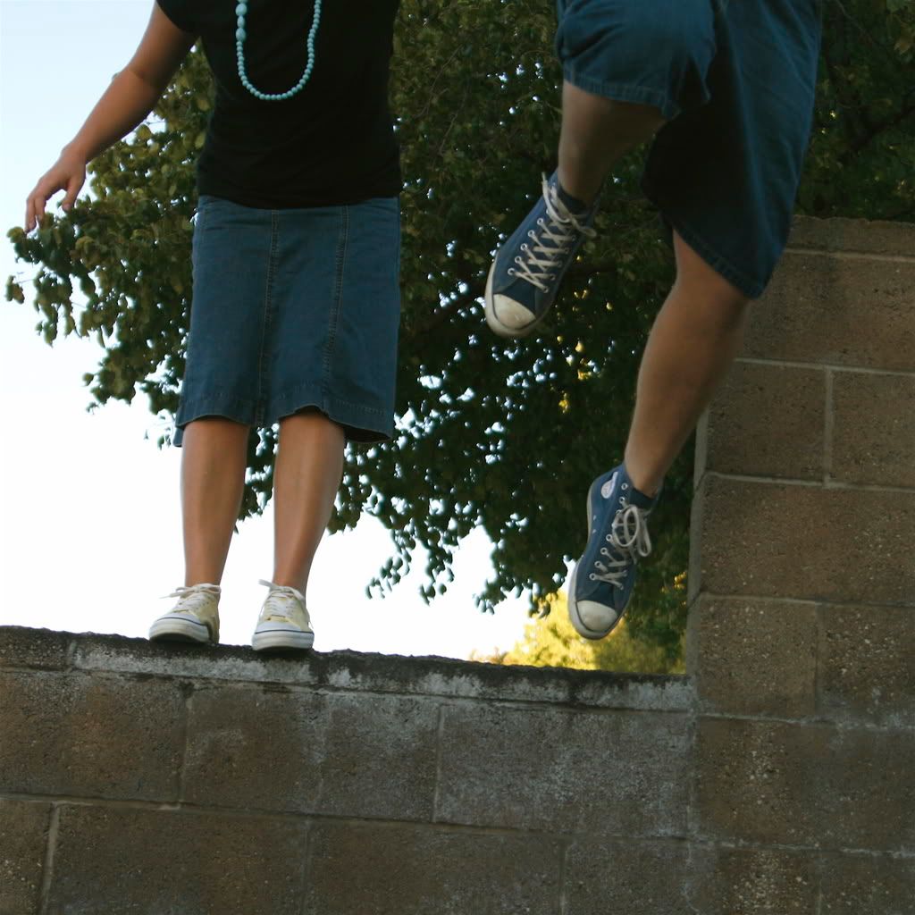 oh my goodness - we jumped alot of times. and the one picture that is not of us on the ground or us still on the ledge is the one jump i chicken out on : )