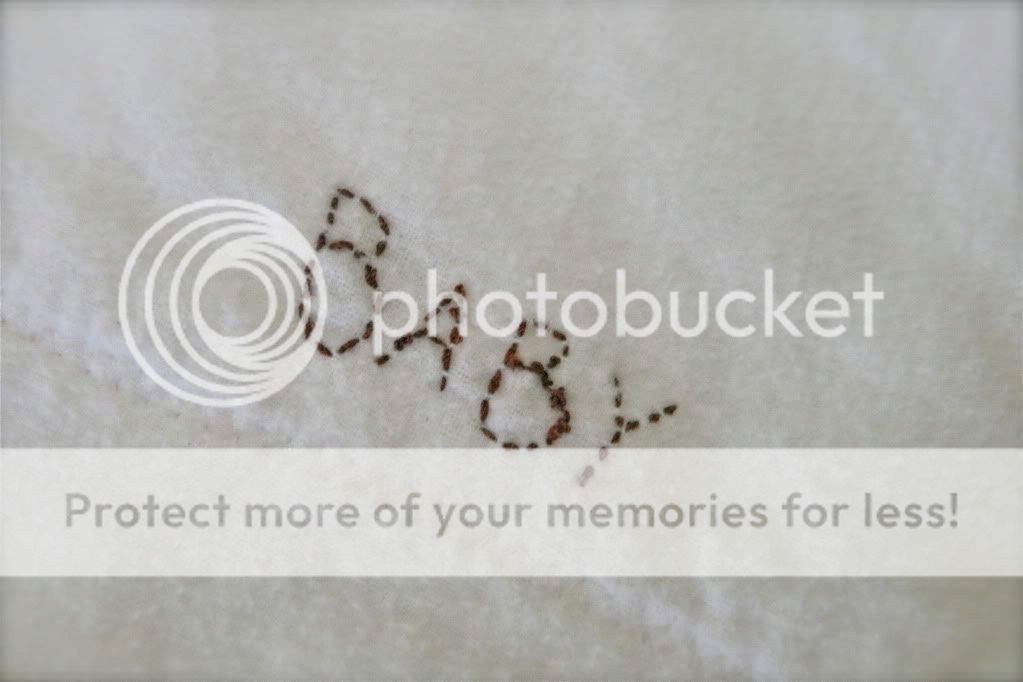 or i get the great idea to stitch some writing on a sheet for the cradle and get one word done & am tired of that : ) or how hard can it be to make a blanket?